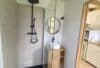 - Une salle de bains équipée de barres d’appui, d’une douche à l’italienne et d’un revêtement antidérapant.