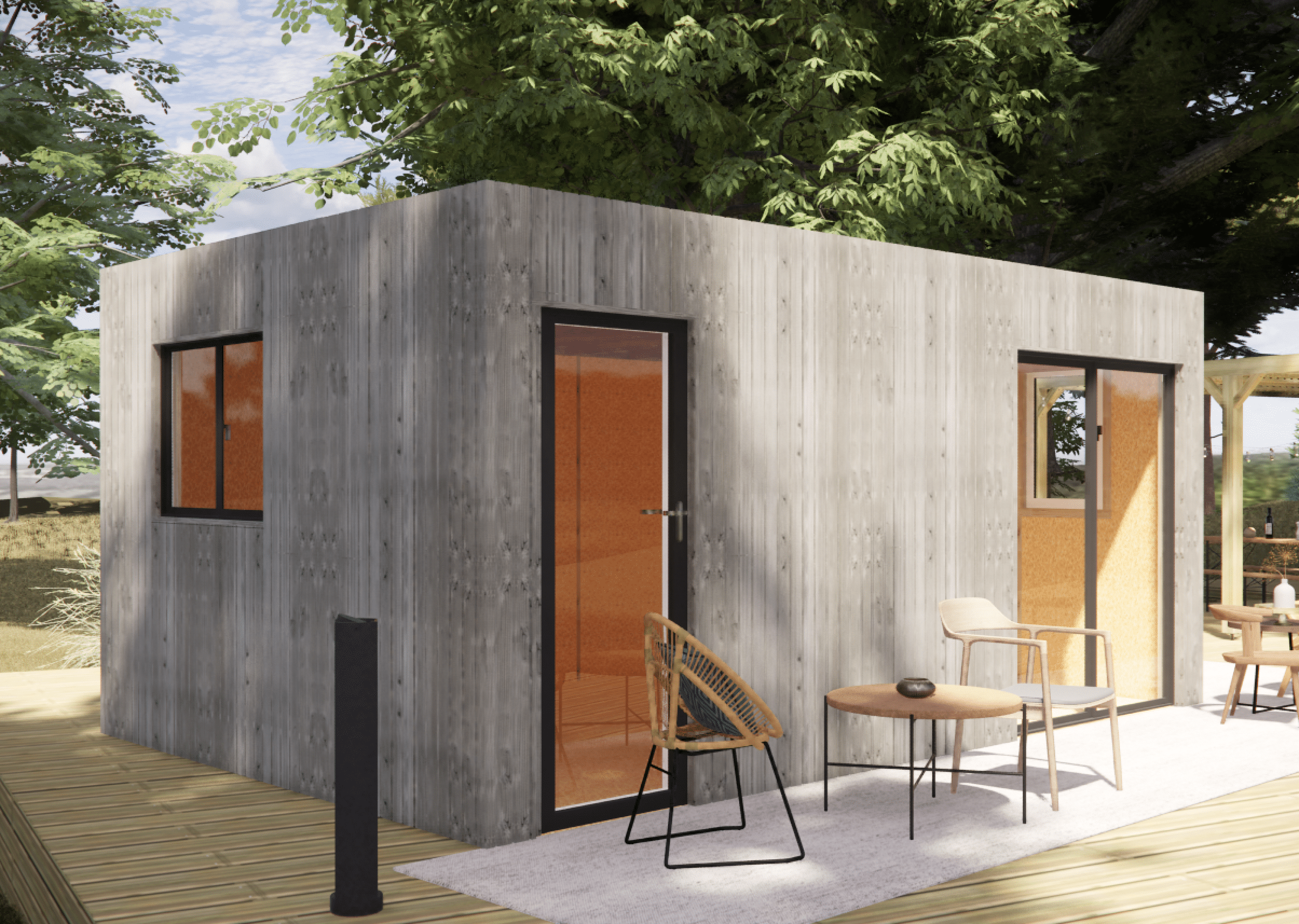 Ce bungalow habitable en ossature bois est une solution idéale pour créer un espace indépendant moderne, confortable et esthétique.