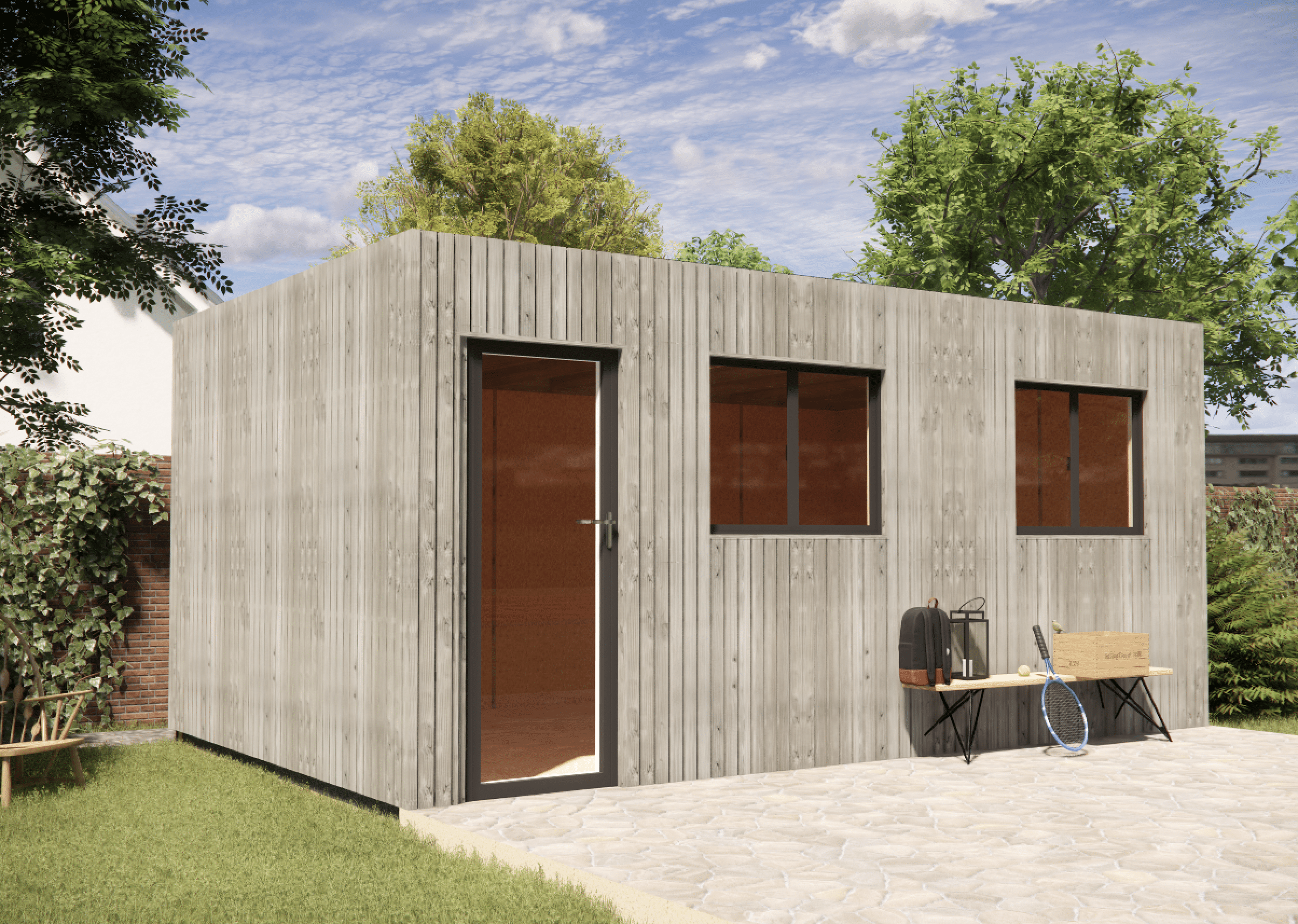 Cette dépendance de jardin en bois permet de créer un espace indépendant moderne et parfaitement isolé.