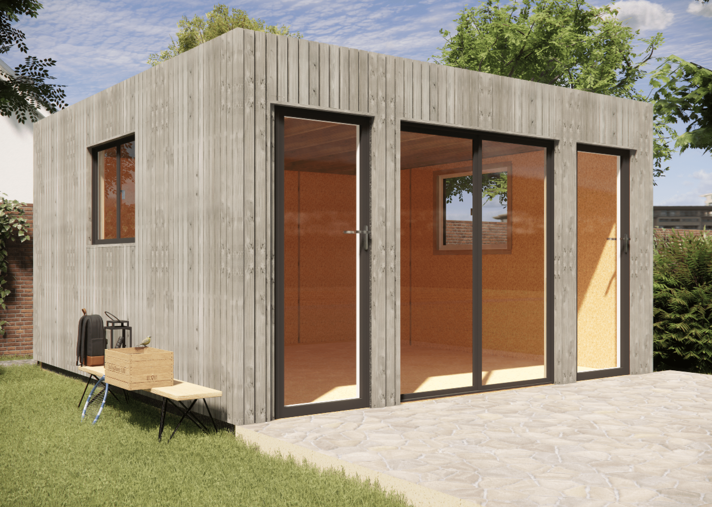 Cette dépendance de jardin en bois sans permis (selon dimensions) permet d’ajouter un espace confortable et isolé dans votre extérieur.