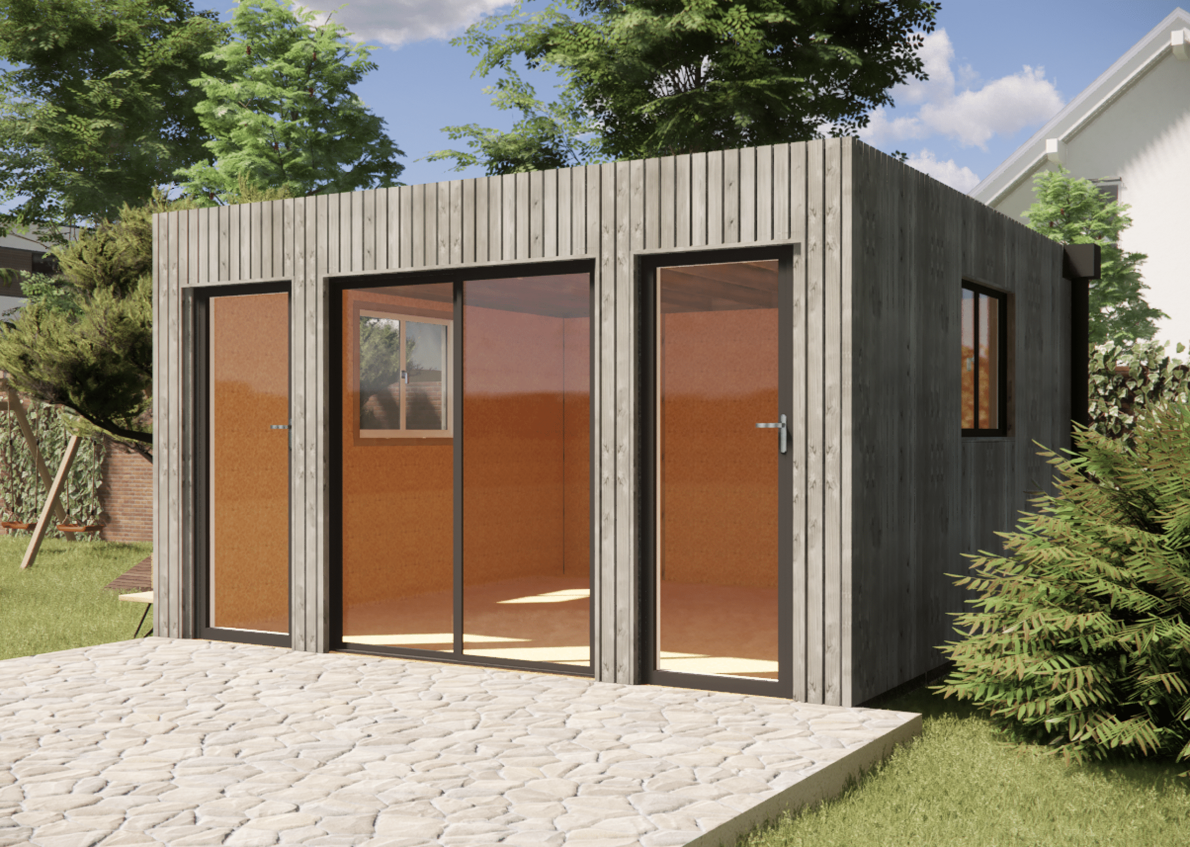 Cette dépendance de jardin en bois sans permis (selon dimensions) permet d’ajouter un espace confortable et isolé dans votre extérieur.