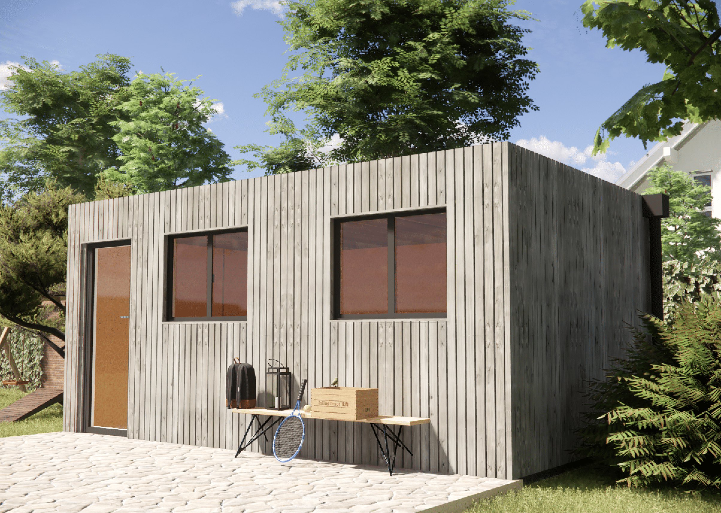Cette dépendance de jardin en bois permet de créer un espace indépendant moderne et parfaitement isolé.